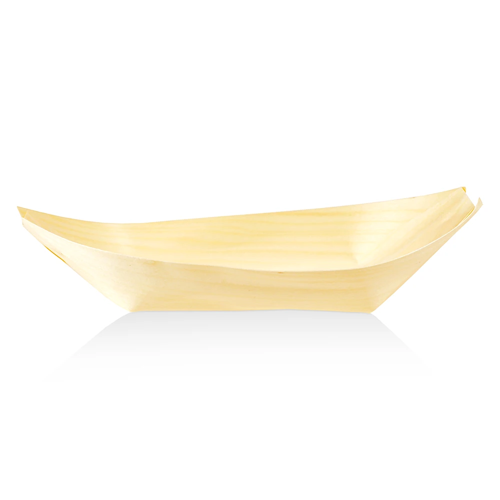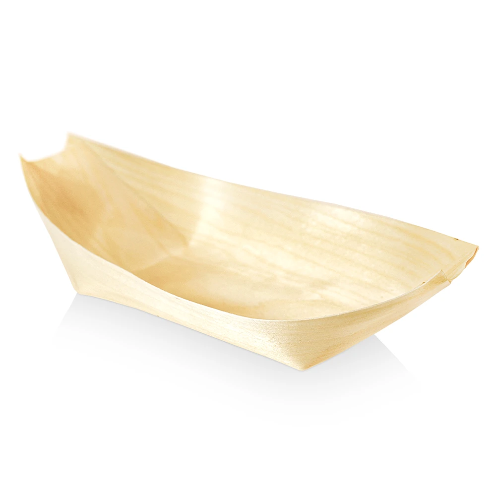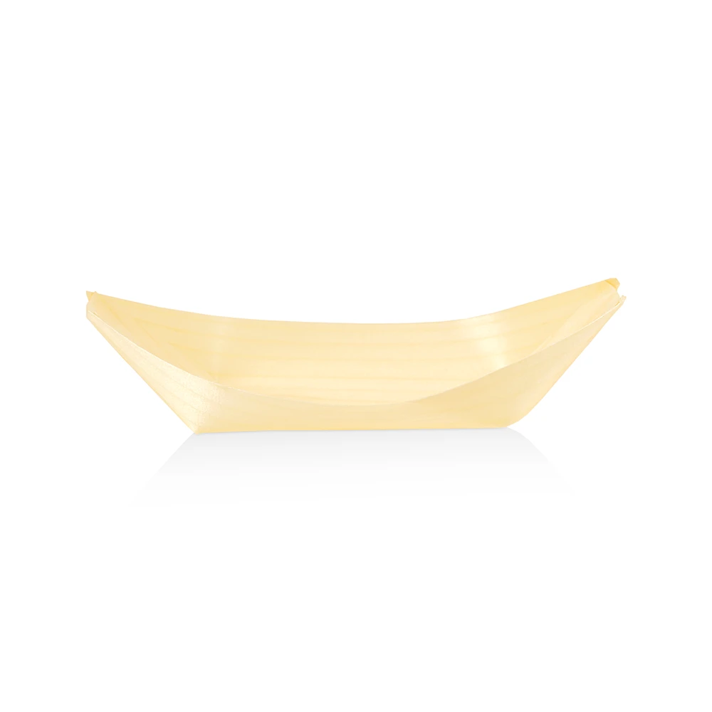 Jednorazové drevené loďky určené na podávanie dezertov, pochutín, finger food, ovocia, sladkostí, predjedál a degustačných porcií. Vyrobené z prírodného, masívneho dreva z kontrolovaných plantáží. Predstavujú estetickú ekologickú alternatívu k plastovým a papierovým nádobám, čím zvýrazňujú charakter podávaných jedál.