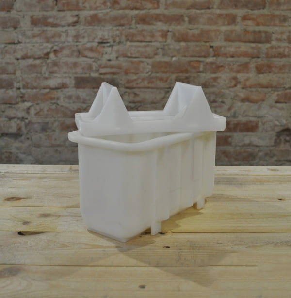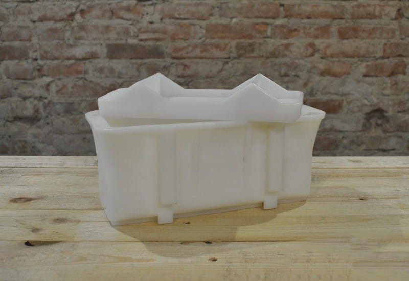Profesionálna, robustná forma obdĺžnikového tvaru s vekom na lisovanie. Vyrobená z pevného materiálu. Na veku sú držiaky na lisovanie.