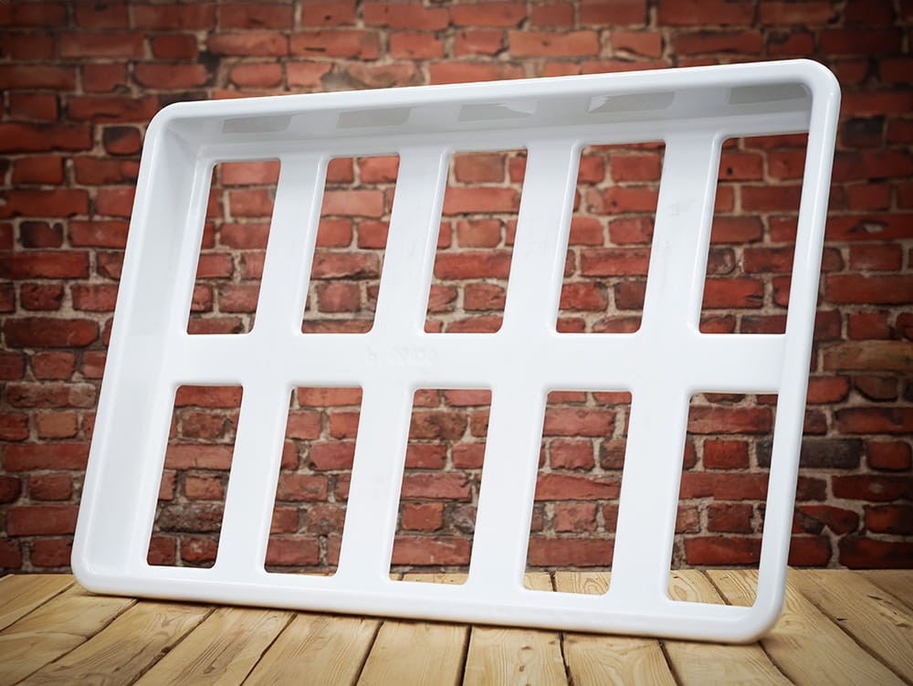 Rozdeľovač s rozmermi 83 x 57 cm s 10 obdĺžnikovými otvormi (2 x 5 radov) s rozmermi 21 x 10 cm.
